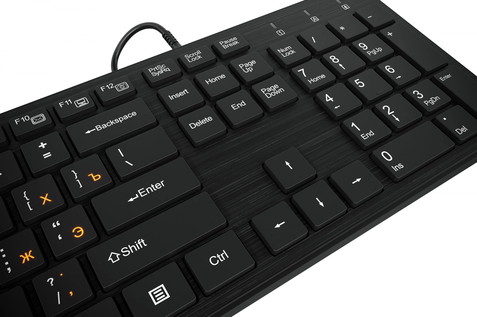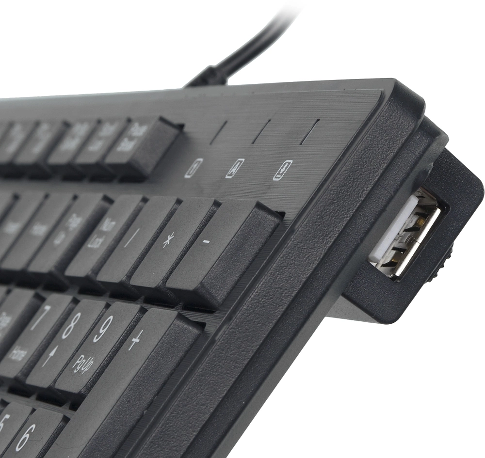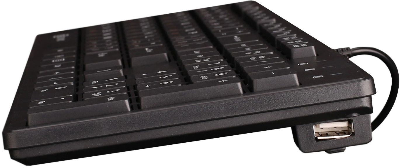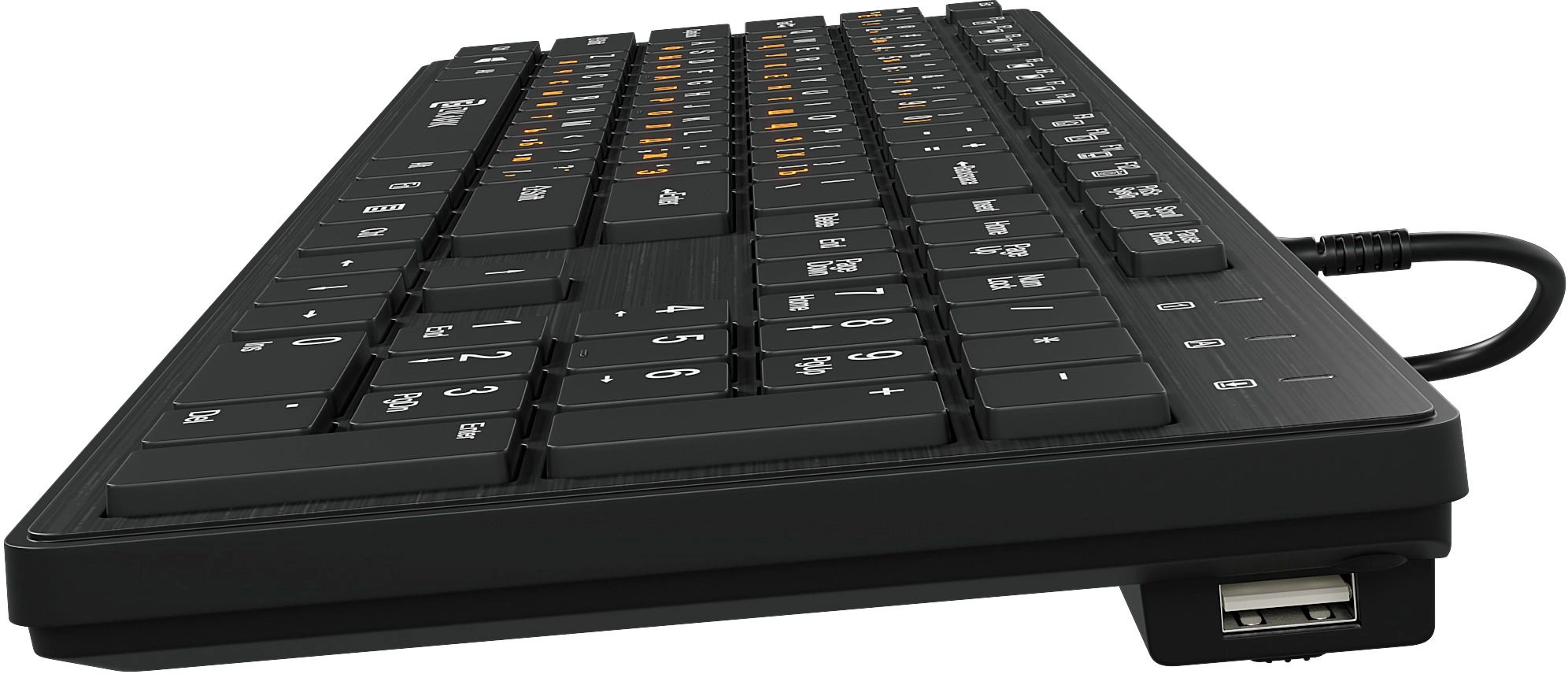 | Особенности | Клавиатура slim-дизайна с клавишами островного типа с мультимедийными функциями с дополнительными USB портами для подключение устройств |