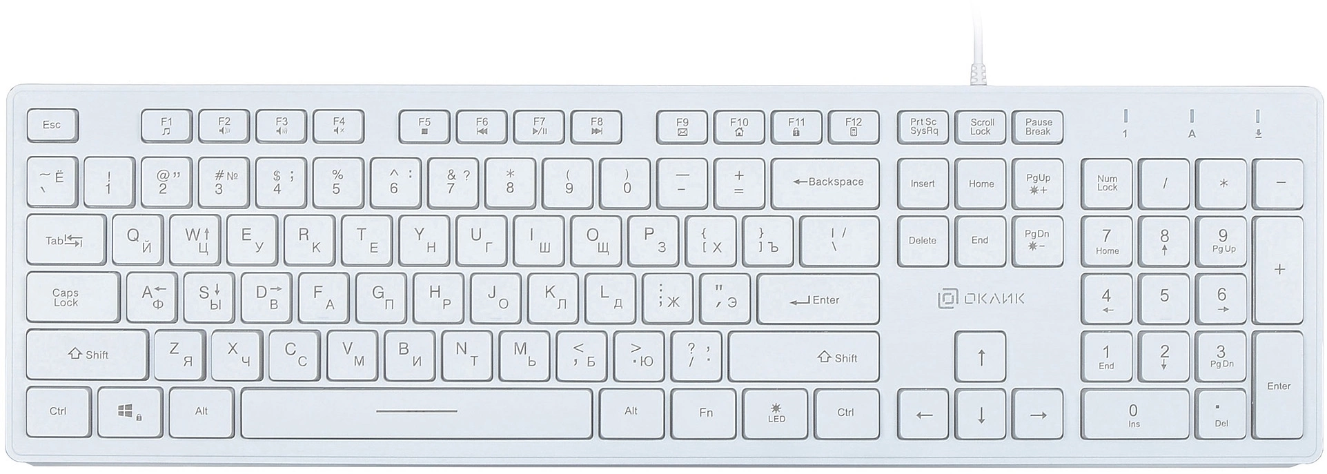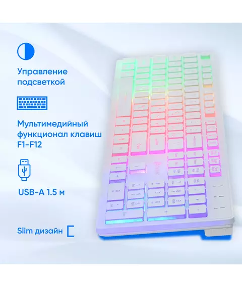 Клавиатура Oklick 550ML белый USB slim Multimedia LED [1061618]