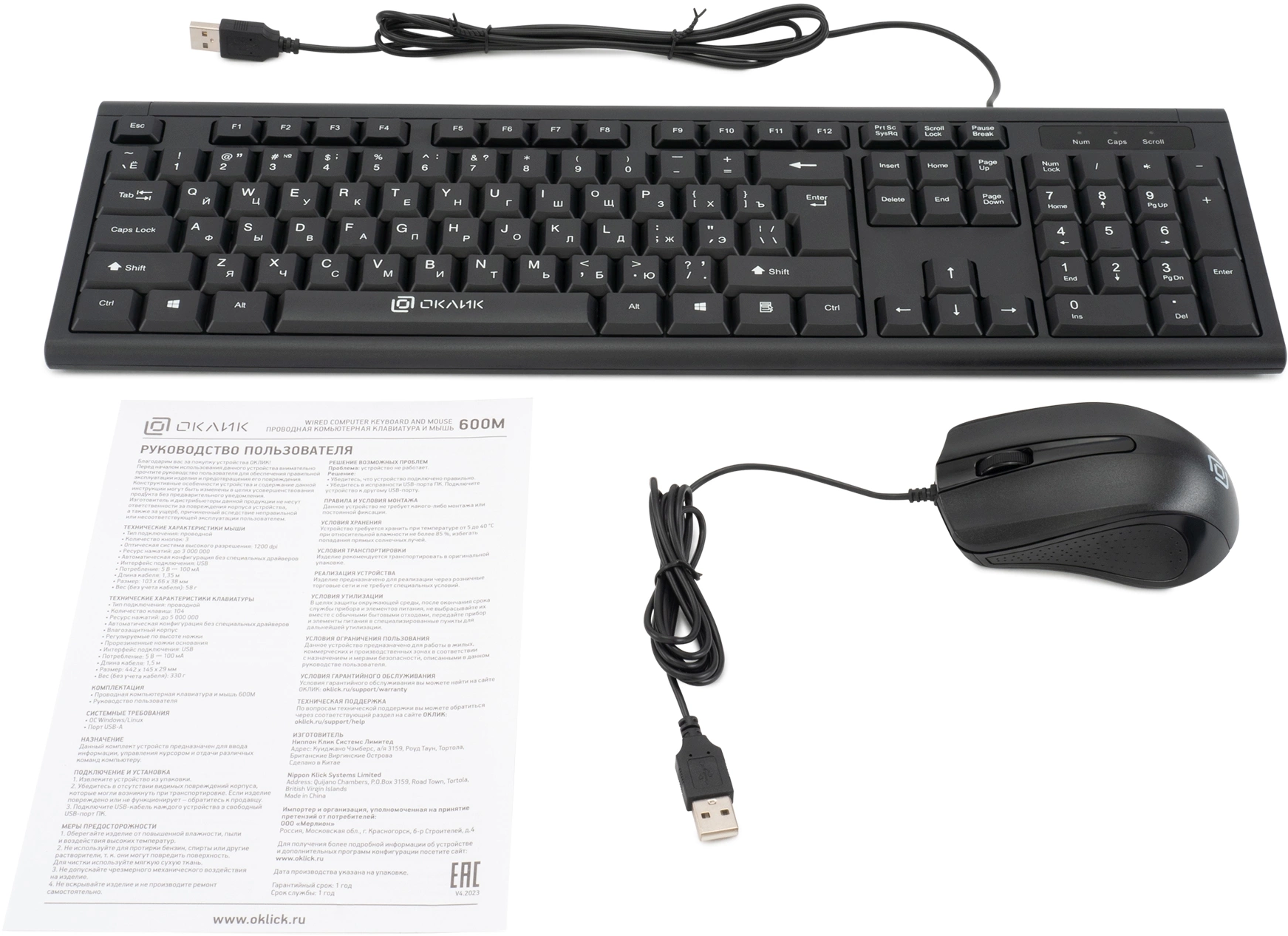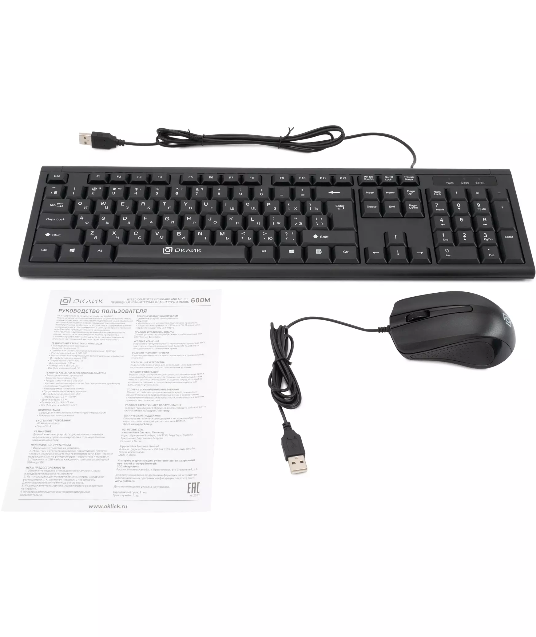 | Комплект поставки | Проводная компьютерная клавиатура и мышь 600M |