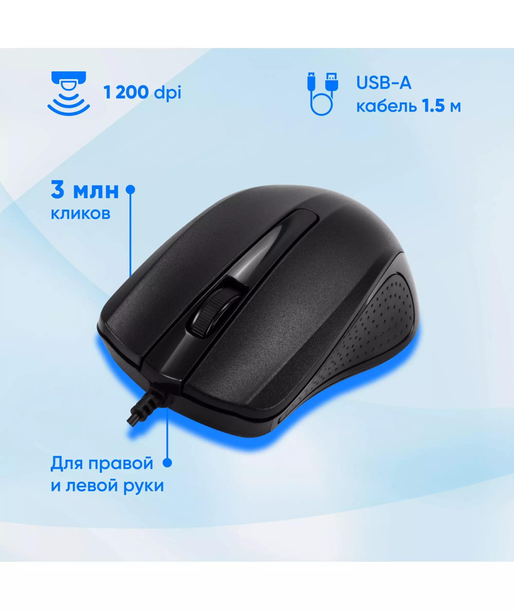 | Особенности мыши | Ресурс кнопок до 3000000 нажатий |