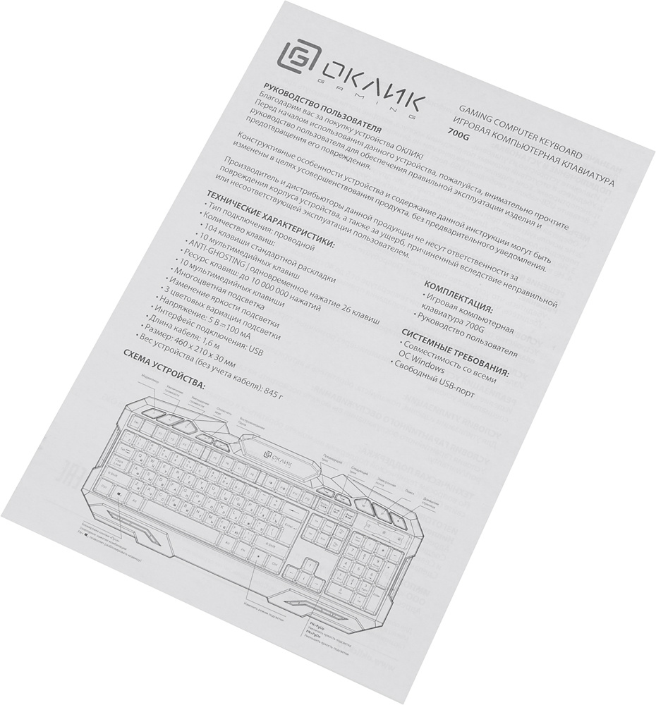 | Размеры клавиатуры | 460x30x210 |