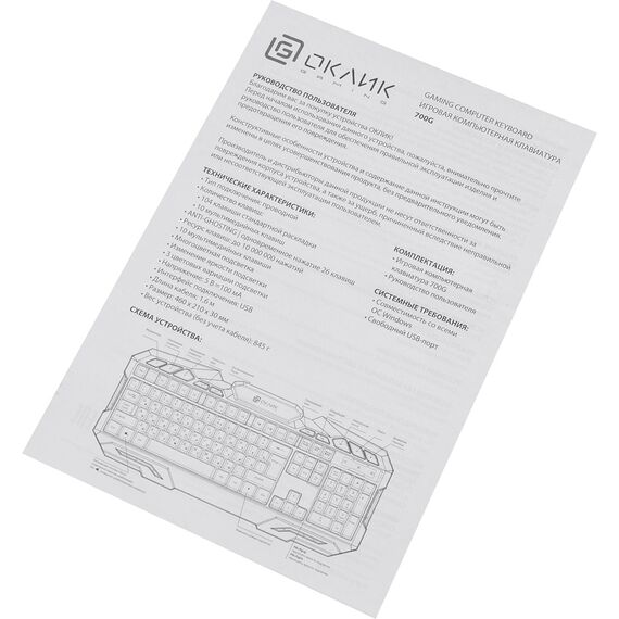 Клавиатура Oklick 700G Dynasty черный USB Multimedia for gamer LED [1061657]