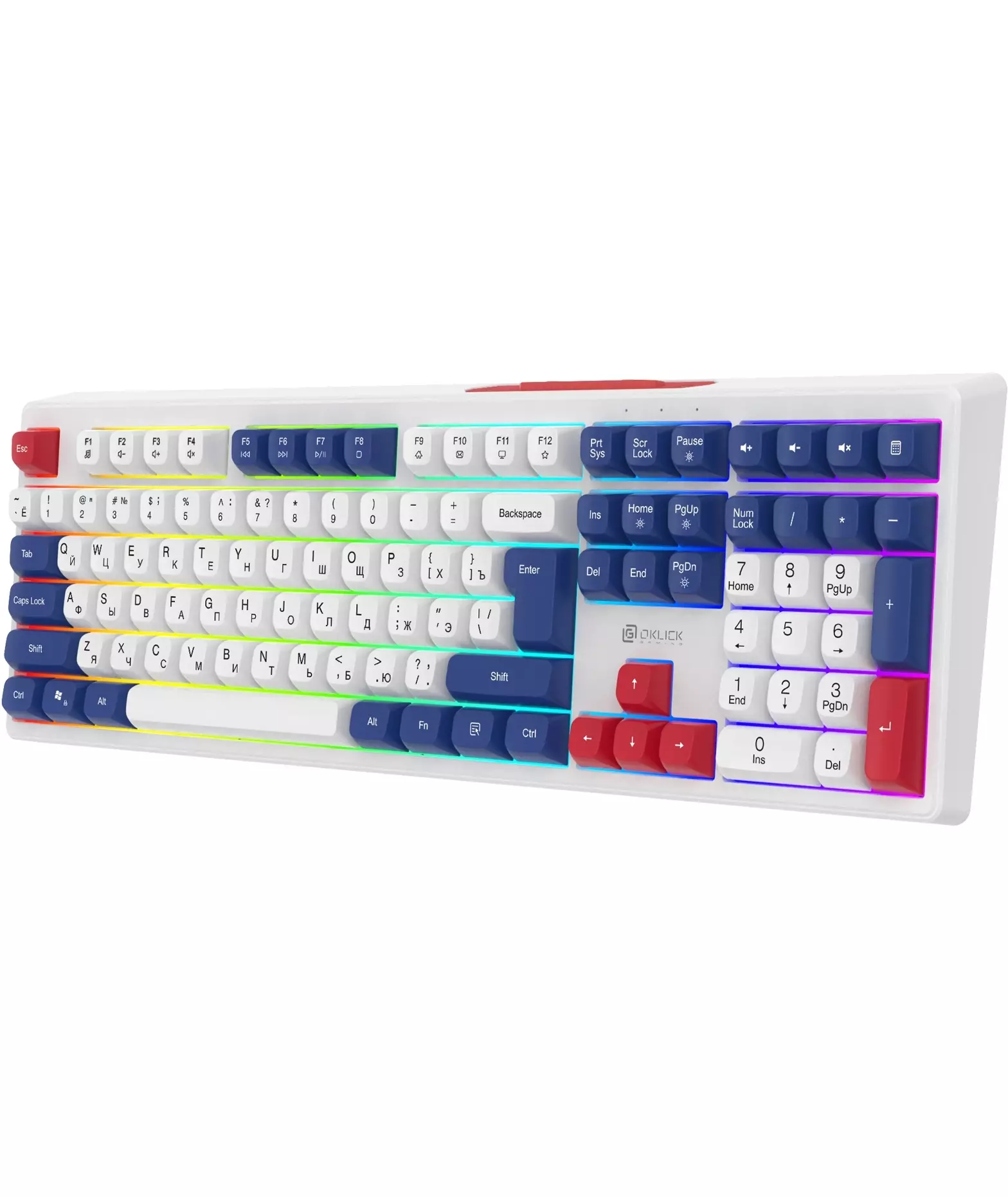 Клавиатура Oklick 725G белый/красный USB Multimedia for gamer LED кабель 1.8м [2070294]