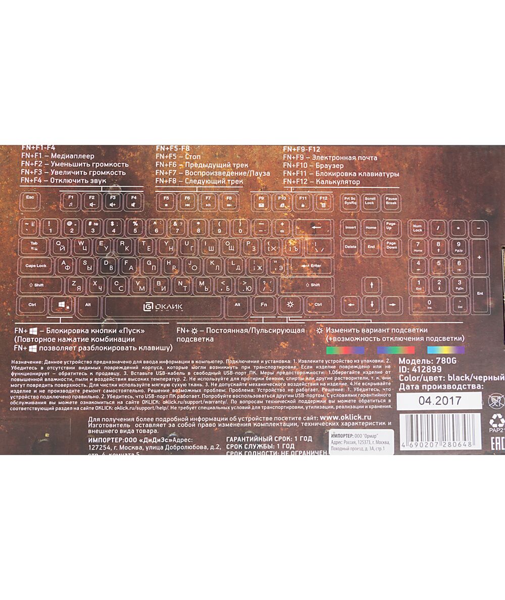 - Вес (клавиатуры): 0.655 кг