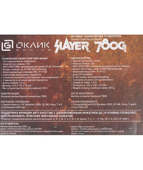 Клавиатура Oklick 780G SLAYER Черный, USB, for gamer, LED [412899]