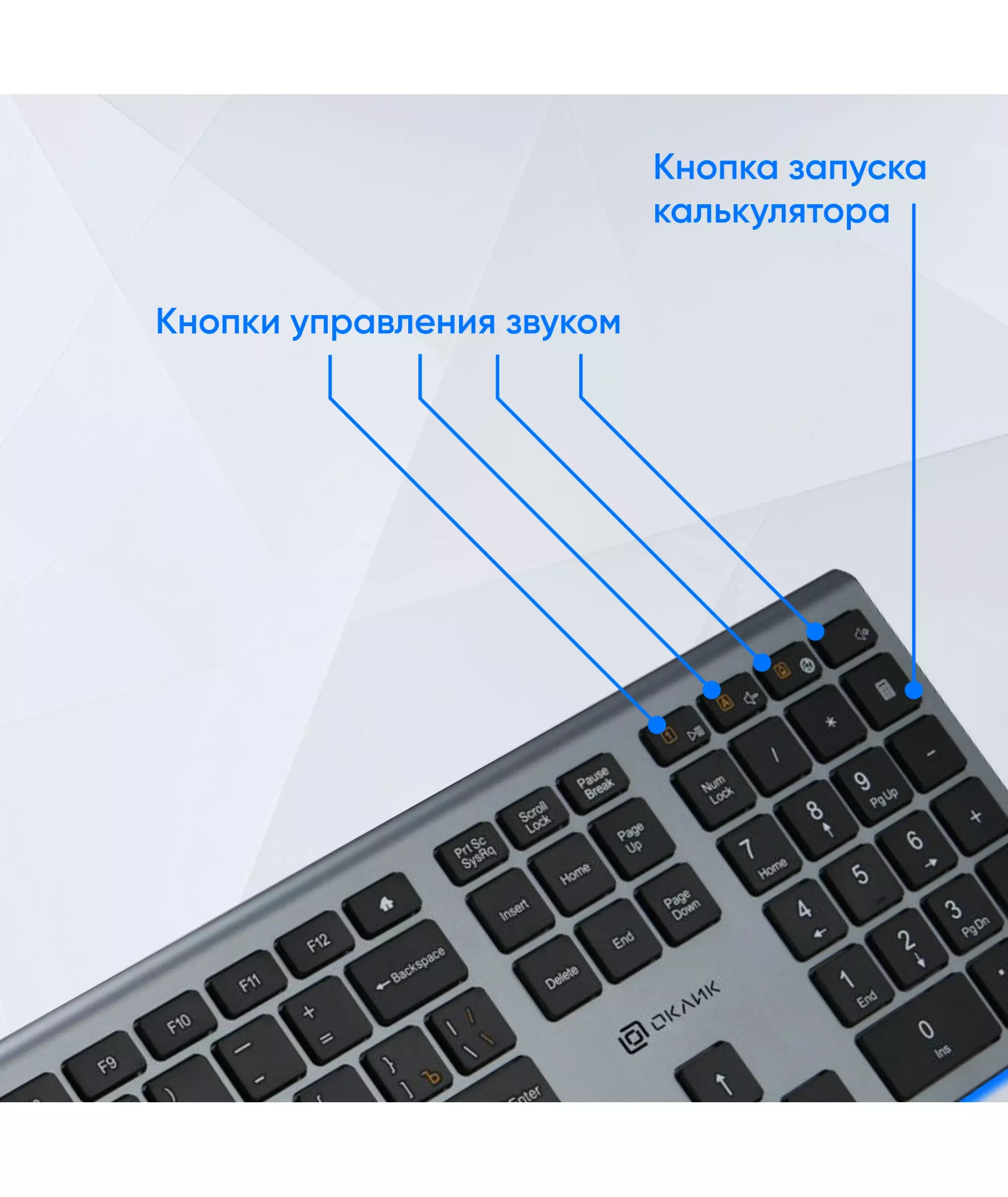 Клавиатура Oklick 890S 890S серый/черный USB slim Multimedia [1784239]