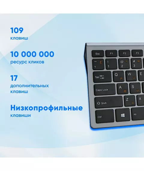 | Особенности | Корпус - алюминий+пластик, ножничный механизм нажатия, прорезиненные антифрикционные ножки, ресурс нажатий 10 млн, мультимедийный функционал клавиш |