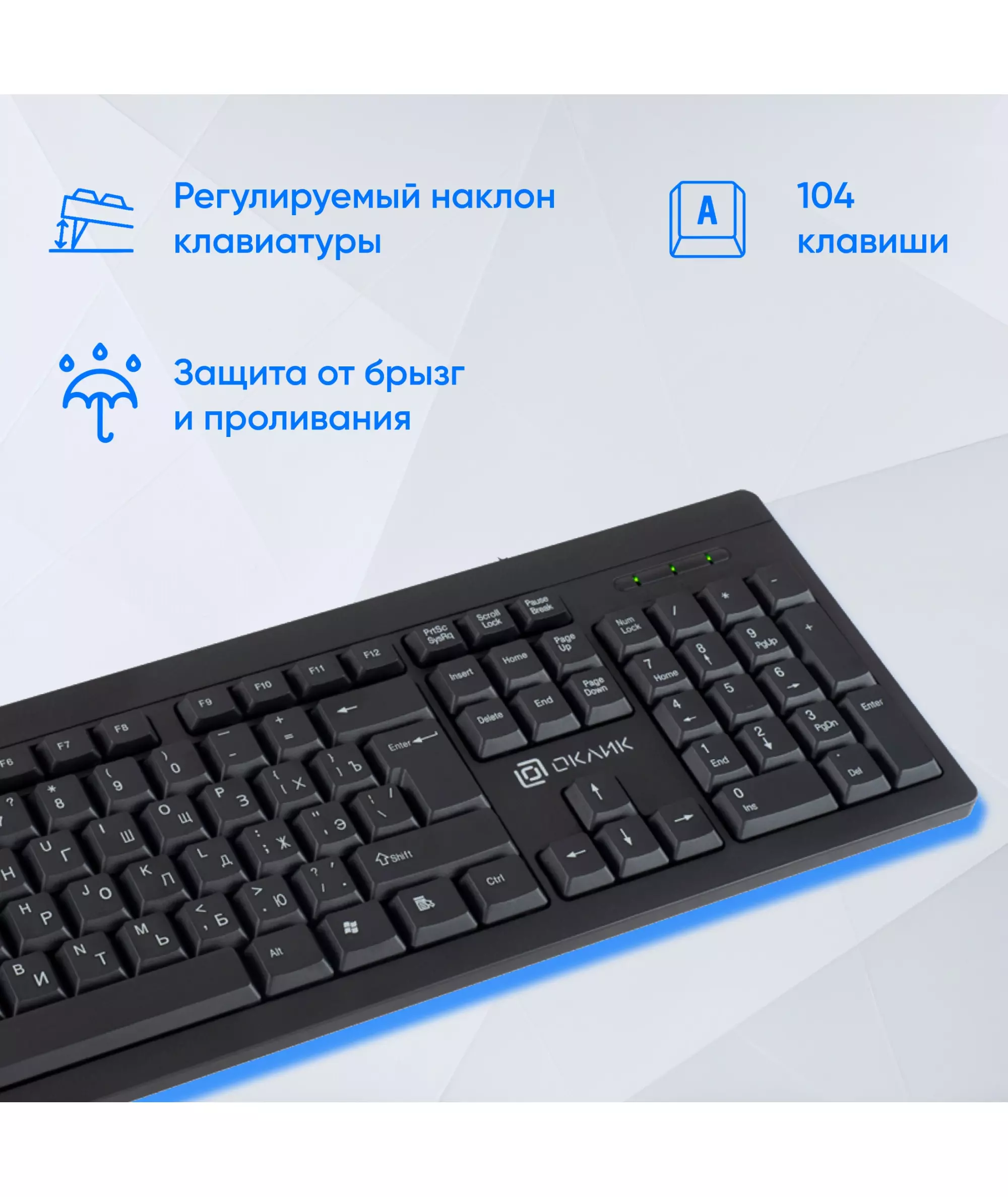| Особенности | Проводная офисная клавиатура классического дизайна. Ресурс нажатий клавиш - до 10 000 000 раз. Влагозащитный корпус. |