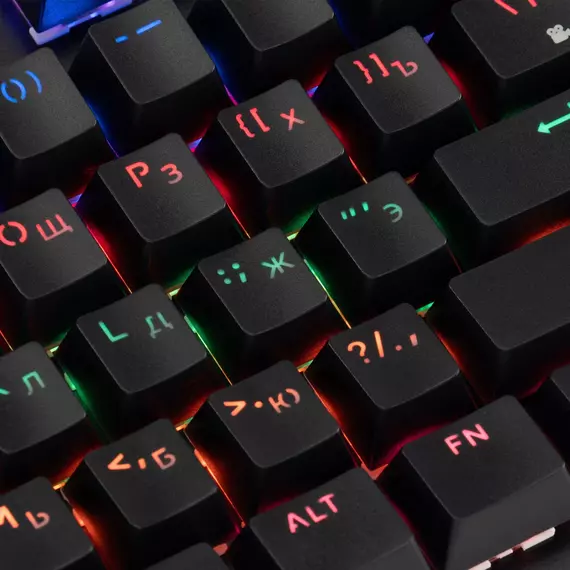 | Особенности | Механическая игровая 104-клавишная клавиатура Oklick 990G2 впечатляет солидным ресурсом в 50 млн нажатий. Модель оборудована синими свитчами: они отличаются четким тактильным откликом и слышимым щелчком. Мультимедийные клавиши Fn+F1-F12 |
