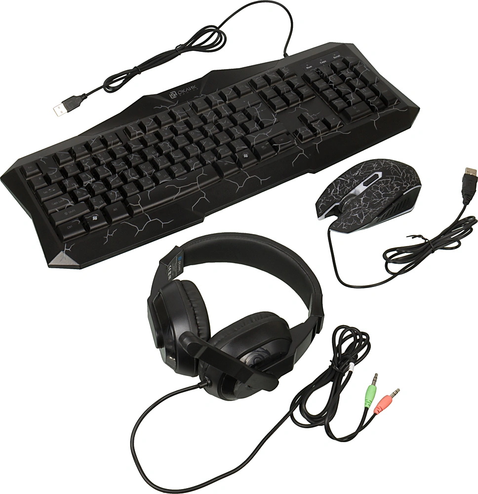 Комплект Oklick HS-HKM100G IMPERIAL клавиатура, мышь, гарнитура черный [489352]