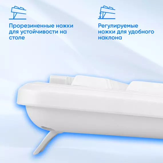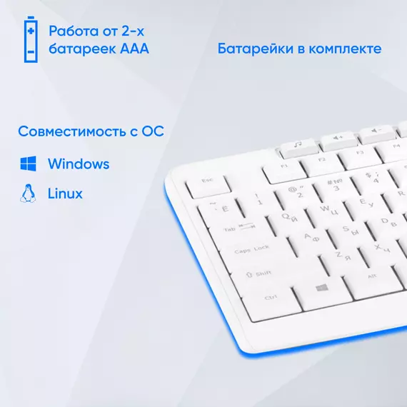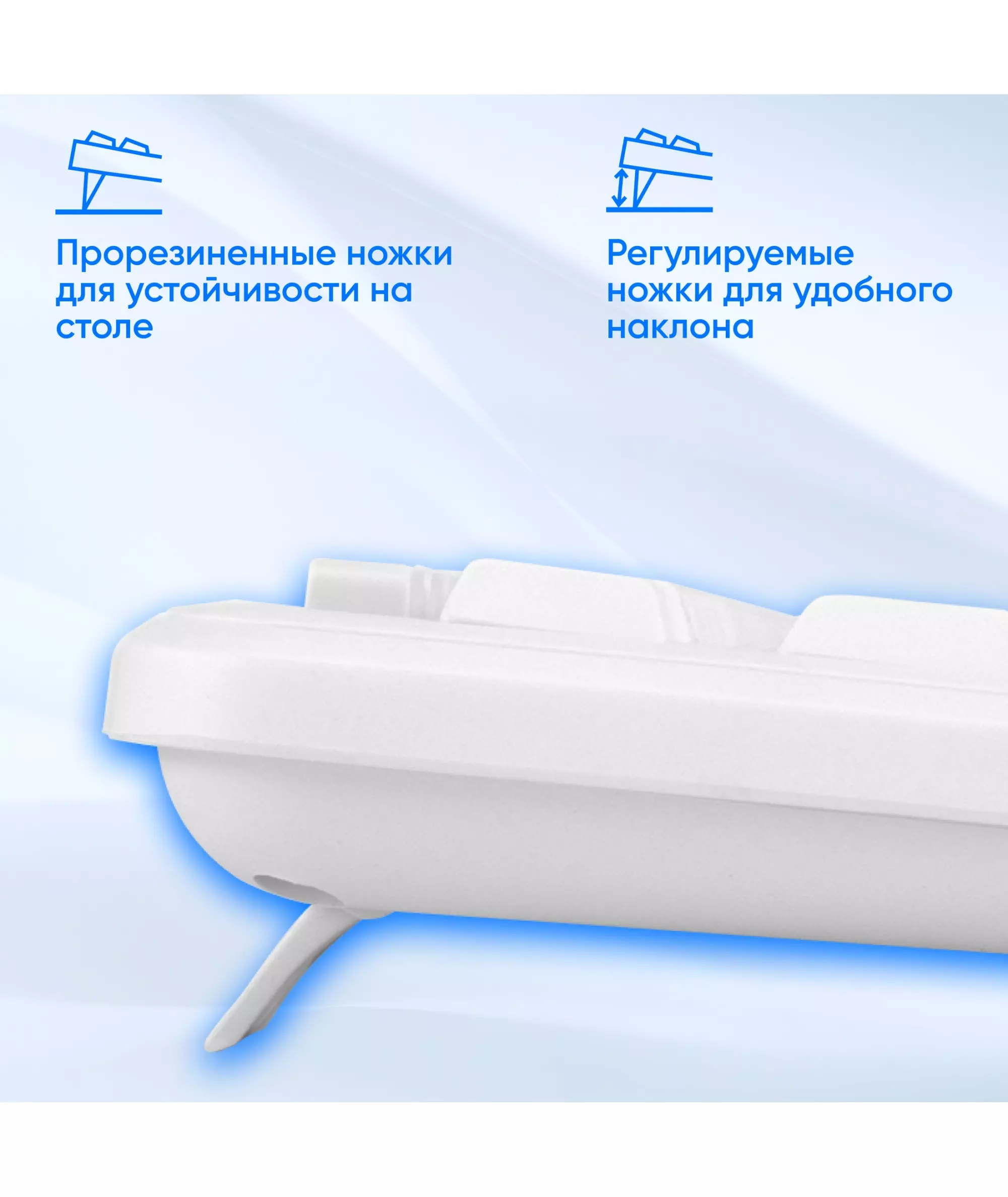 | Особенности | Беспроводная клавиатура с продуманной эргономичной конструкцией для работы дома и в офисе. Девайс оборудован регулируемыми по высоте ножками. Дополнительные мультимедийные и офисные клавиши обеспячат быстрый доступ и управление нужными приложениями. |