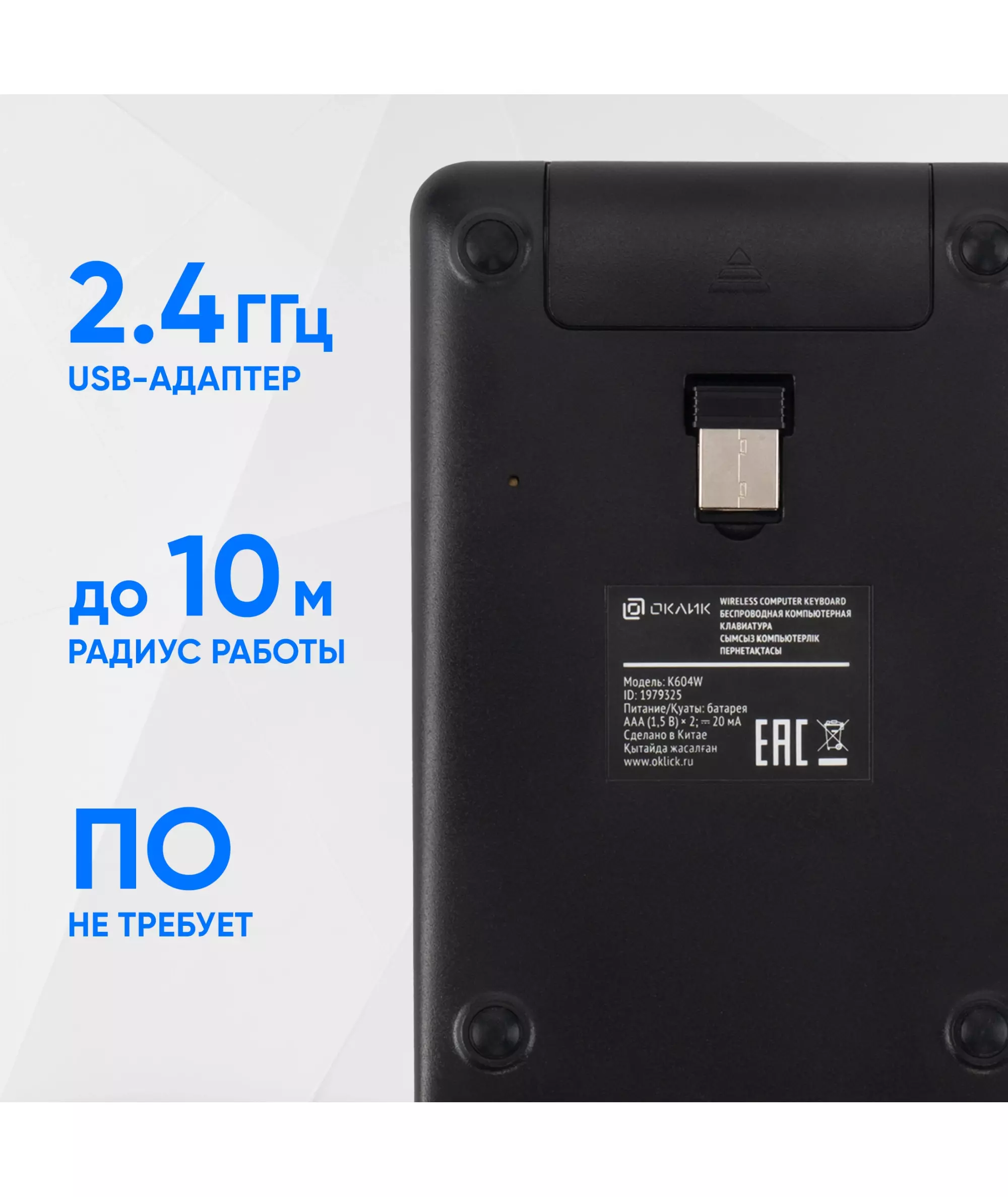 | Радиус действия клавиатуры | 10 м |