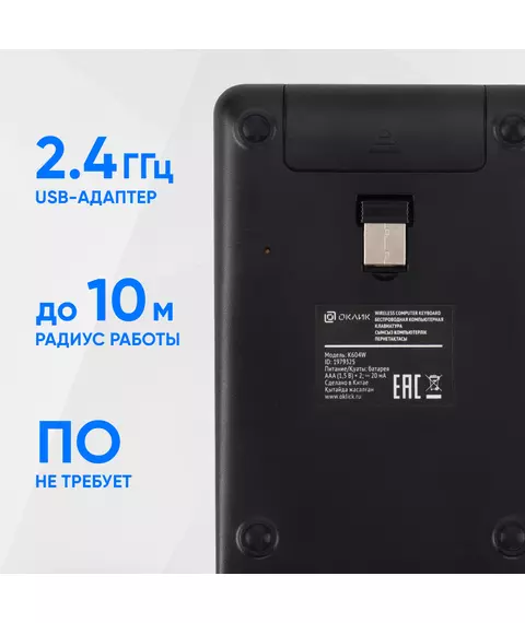 Числовой блок Oklick K604W черный USB беспроводная slim для ноутбука [1979325]