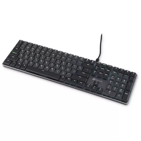 | Особенности | Низкопрофильная механическая клавиатура на переключателях коричневого цвета. Стильное решение для выполнения офисных задач и надежный девайс для игровых баталий. Тактильные переключатели обеспечивают четкое срабатывание клавиш с приятной обратной связью. Ресурс нажатий 50000000 кликов. |