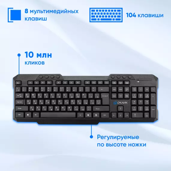 Набор Oklick 205MK представляет собой беспроводную клавиатуру и мышь, которые станут верными помощниками в повседневных рабочих задачах.