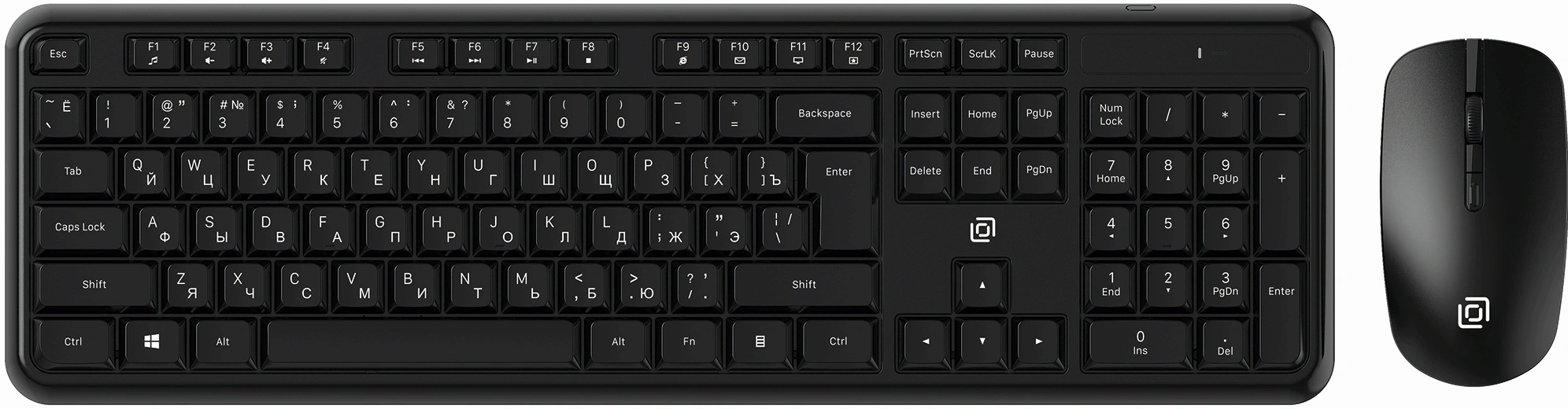 | Особенности комплекта | Беспроводной комплект с абсолютно бесшумными клавишами и приятным нажатием. Клавиатура поддерживает мультимедийный функционал клавиш F1 - F12, имеет выдвижные ножки для регулировки угла наклона и высокий ресурс клавиш. Мышь оснащена 4 клавишами, в том числе колесо для прокрутки и тефлоновыми ножками |