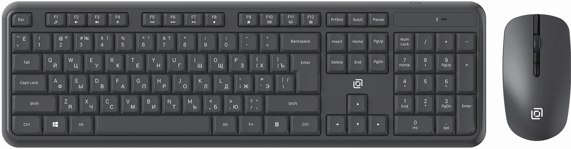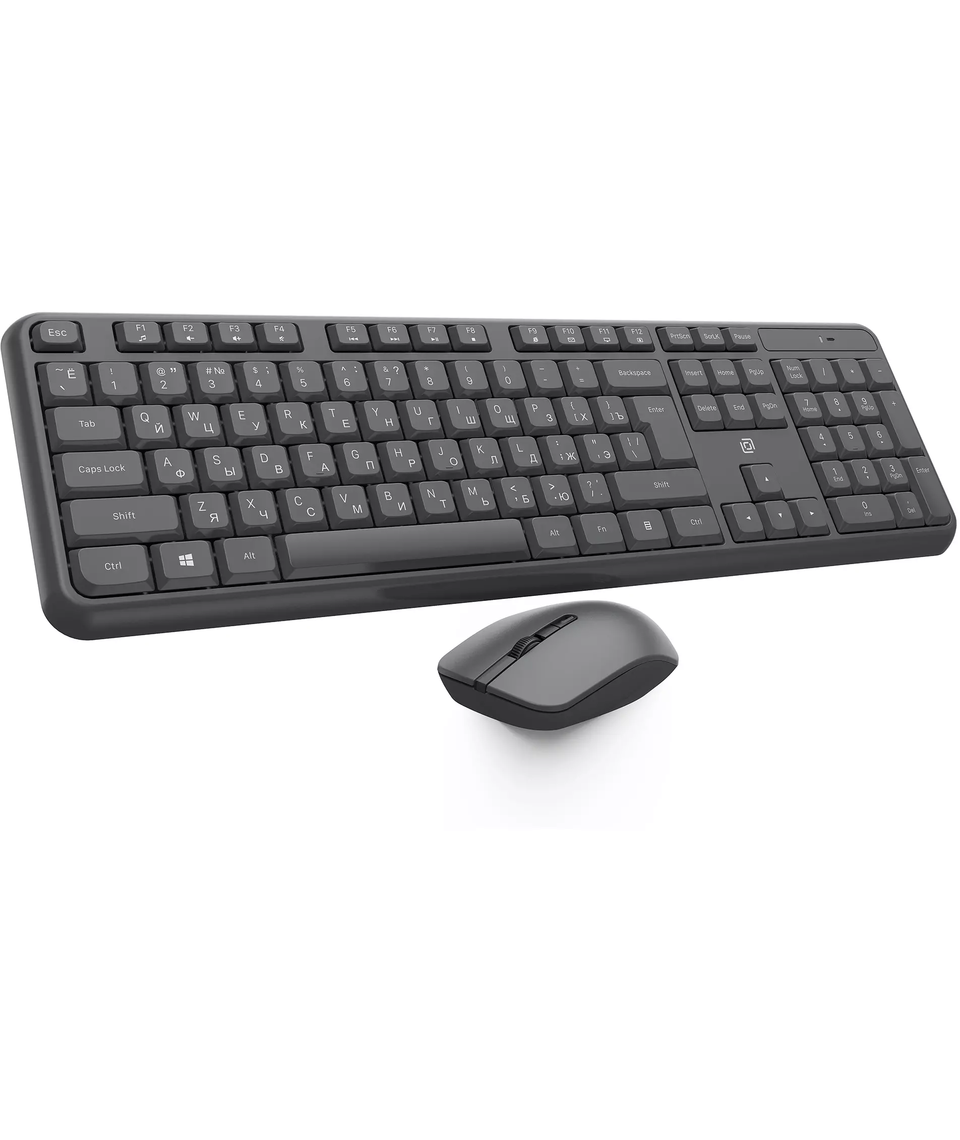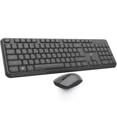 | Особенности комплекта | Беспроводной комплект с абсолютно бесшумными клавишами и приятным нажатием. Клавиатура поддерживает мультимедийный функционал клавиш F1 - F12, имеет выдвижные ножки для регулировки угла наклона и высокий ресурс клавиш. Мышь оснащена 4 клавишами, в том числе колесо для прокрутки и тефлоновыми ножками |
