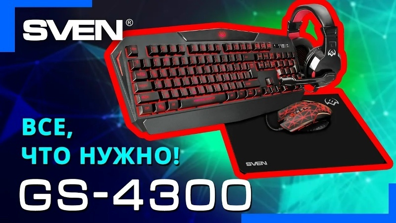 Игровой набор SVEN GS-4300 клавиатура + мышь + гарнитура + коврик, 104 кл.+12Fn, 8 смен. кл. (200-4800DPI) [SV-018382]