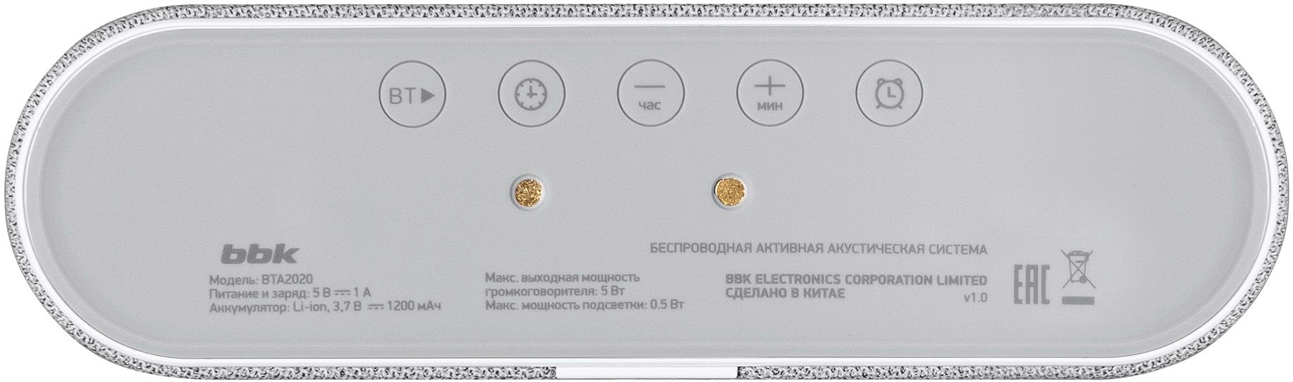 Колонка портативная BBK BTA2020 белый 5W 1.0 BT