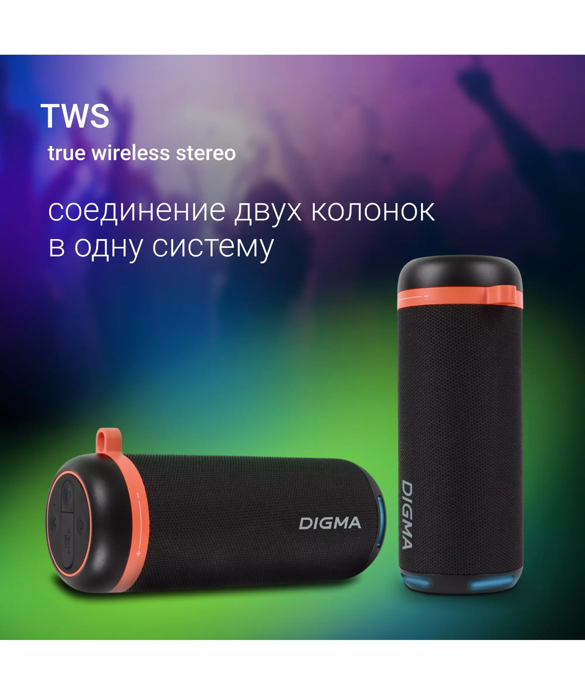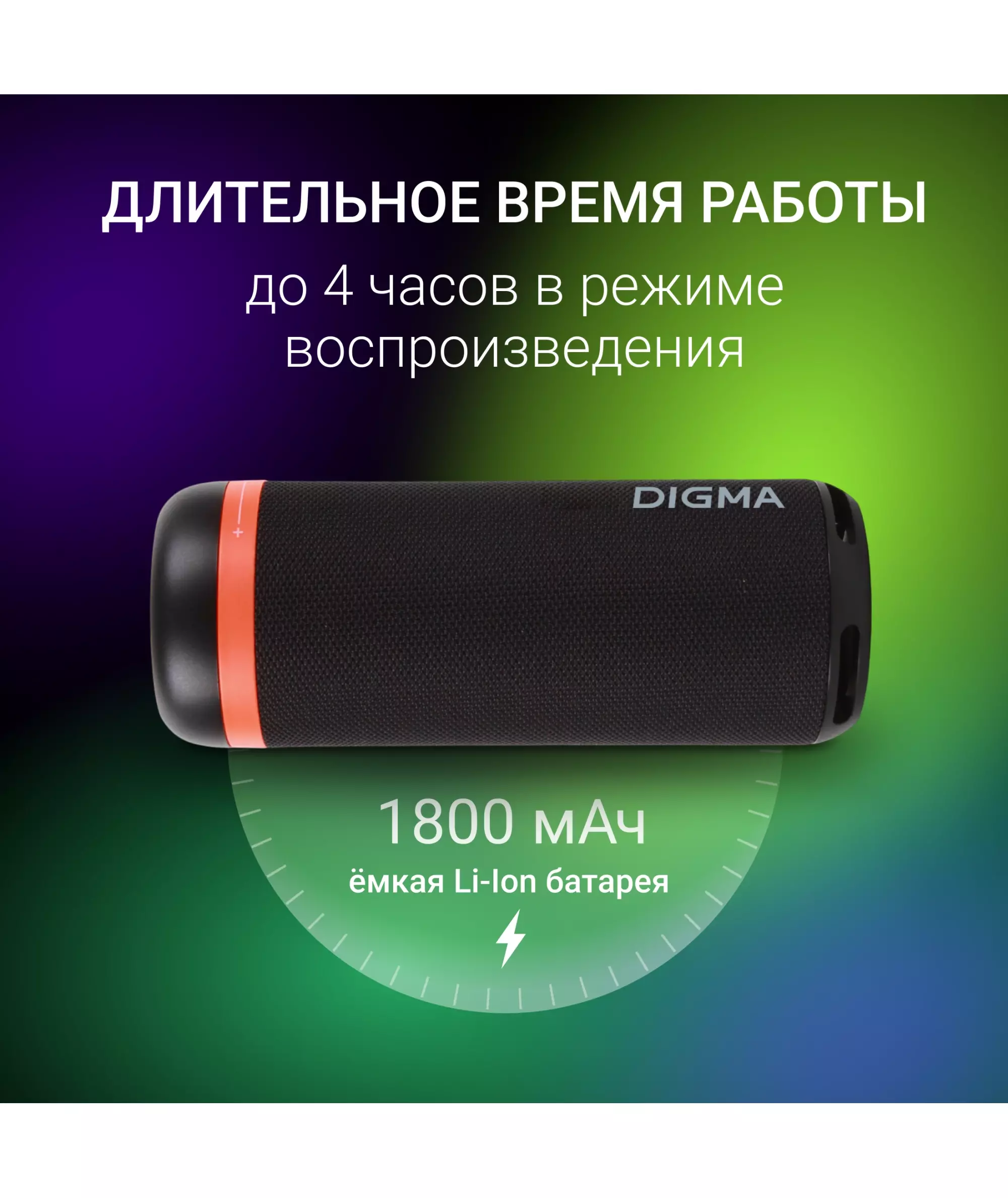 Колонка порт. Digma D-PS1521 черный 16W 2.0 BT 10м 1800mAh [PS1521B]