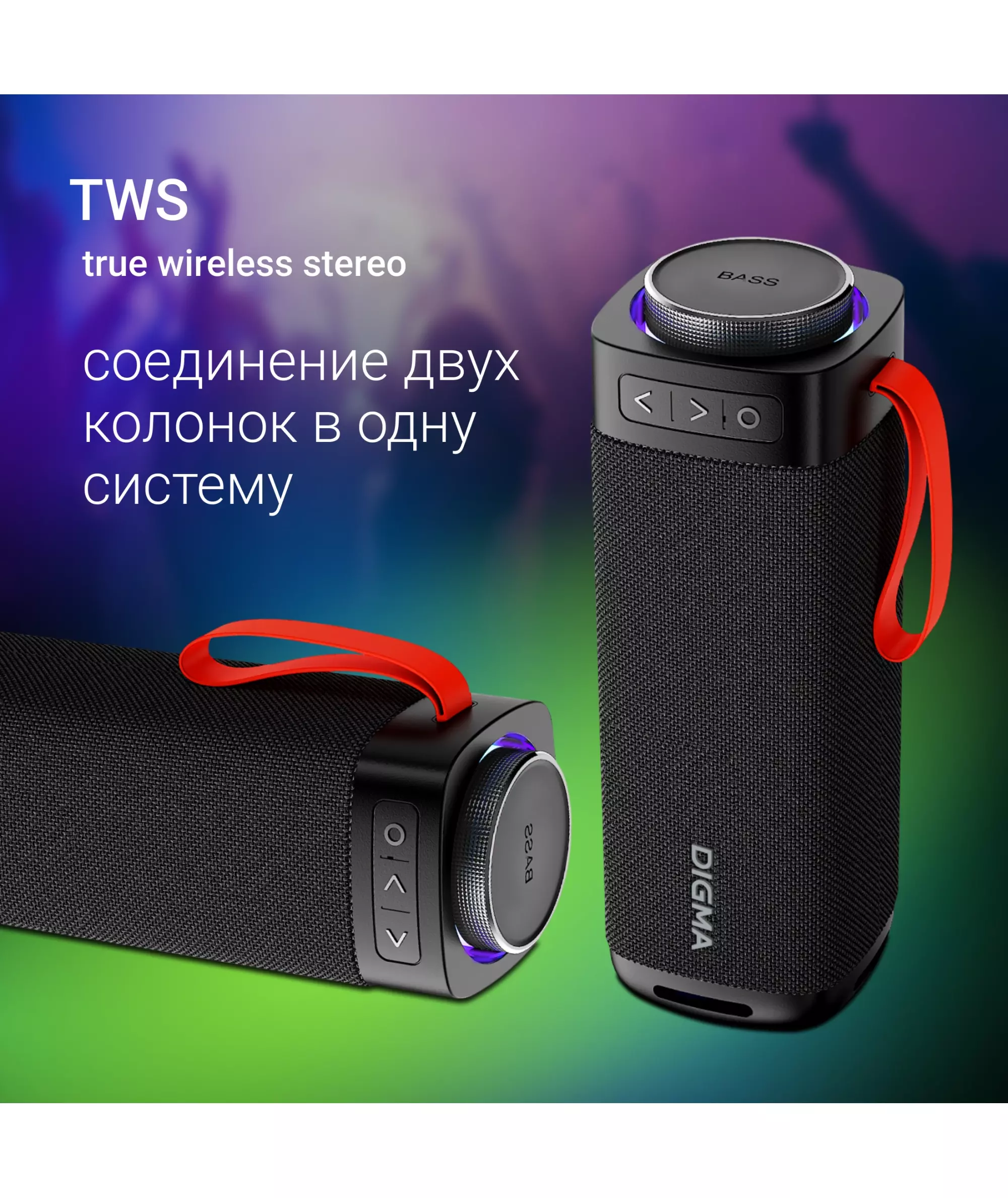 Колонка порт. Digma D-PS1522 черный 60W 2.0 BT 10м 3000mAh [PS1522B]