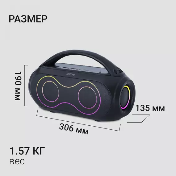 Колонка порт. Digma D-PS1532 черный 60W 2.0 BT 10м 3600mAh [PS1532B]
