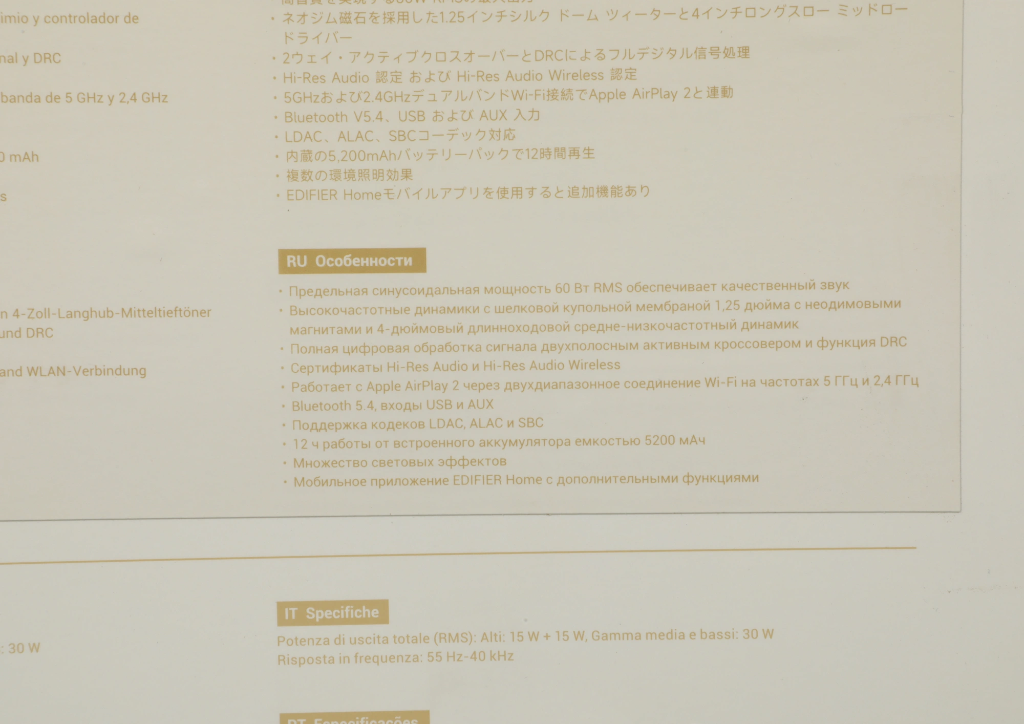 | Особенности | Совместимо с мобильным приложением EDIFIER Home |