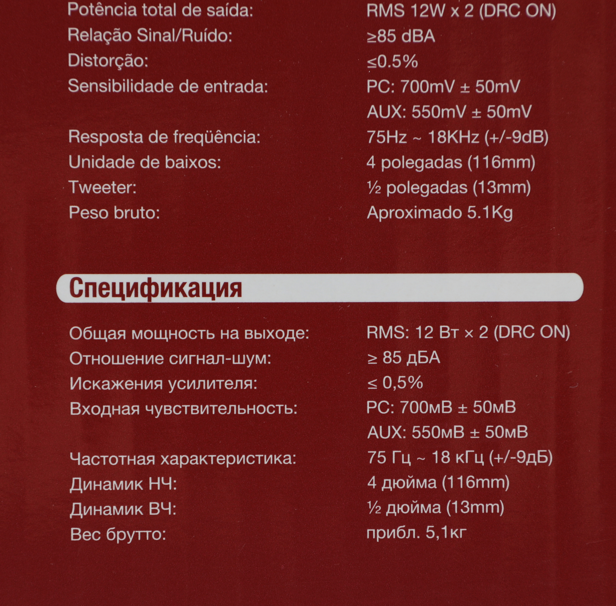 | Частотный диапазон | 75Гц-18КГц |