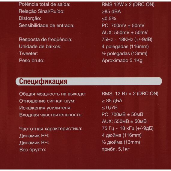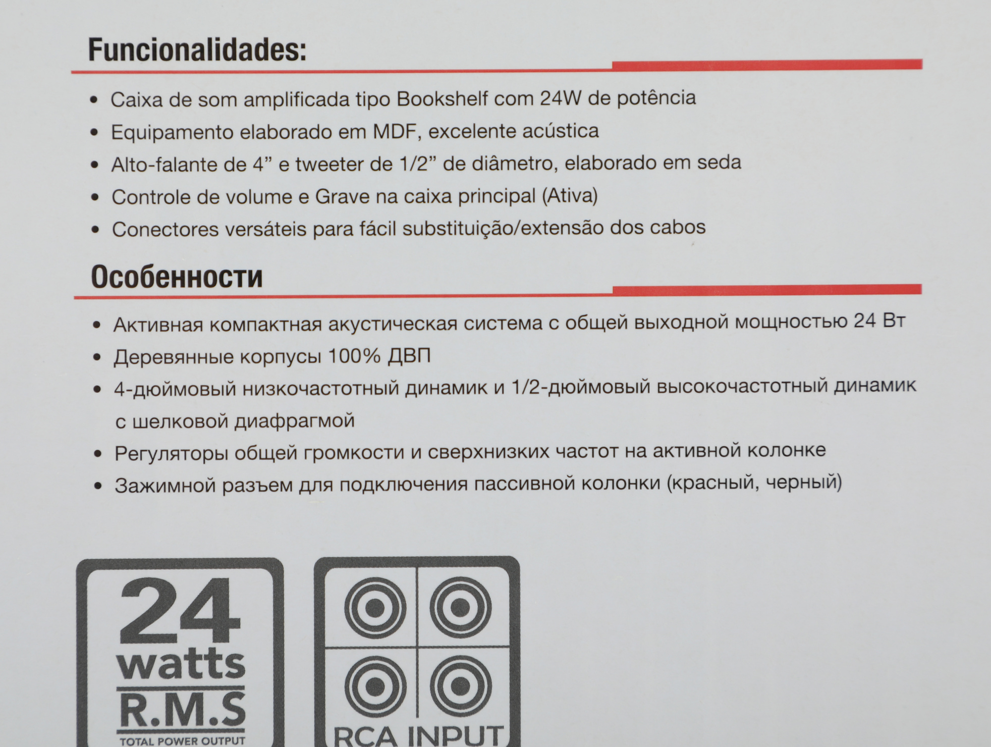 | Суммарная звуковая мощность | 24 Вт |