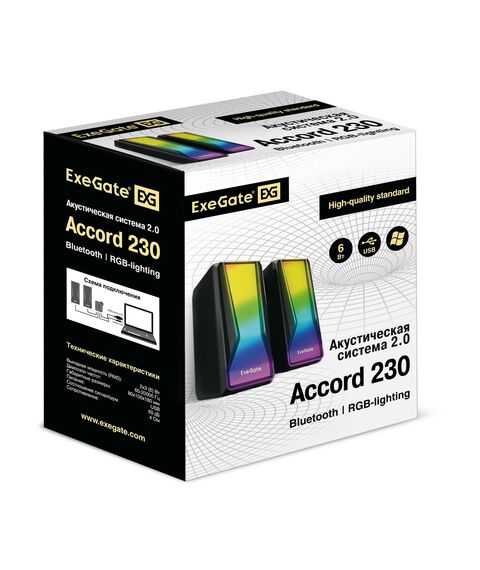 Акустическая система Exegate Accord 230 2х3Вт (6Вт RMS), Bluetooth, питание USB, 60-20000Гц, черный, RGB подсветка [EX289687RUS]