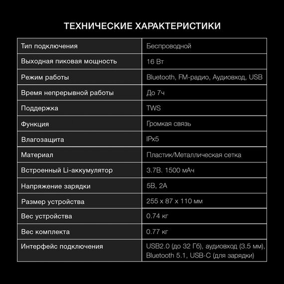 Колонка портативная Hyundai H-PS1020 черный 16W 2.0 BT 10м 1500mAh