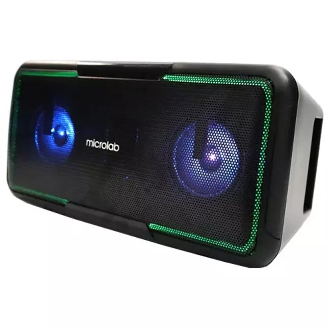 | Особенности | Bluetooth, линейный входа, USB.Вход для микрофонаГлубокий бас5 режимов эквалайзера, звуковые эффекты.7ми цветная LED подсветкаВстроенная литиевая батареяРучка для переноски |