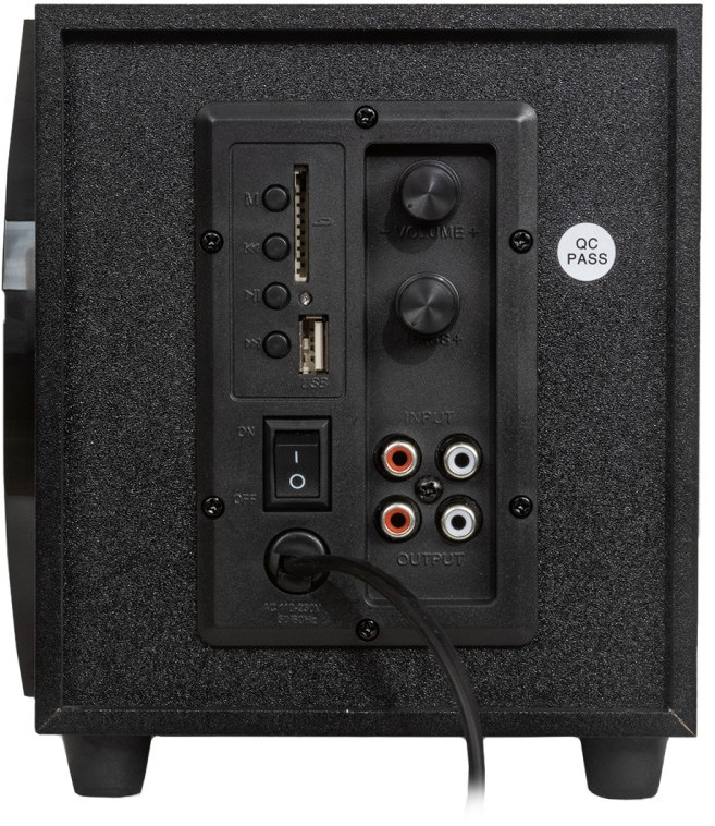 - Активный сабвуфер с кабелем питания, пассивные боковые колонки с соединительными кабелями, гарантийный талон, инструкция на русском языке