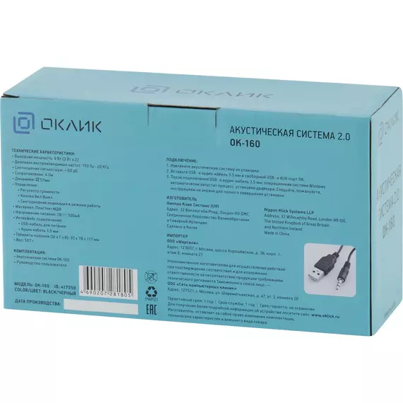 Колонки Oklick OK-160 2.0 черный 6Вт [417559]