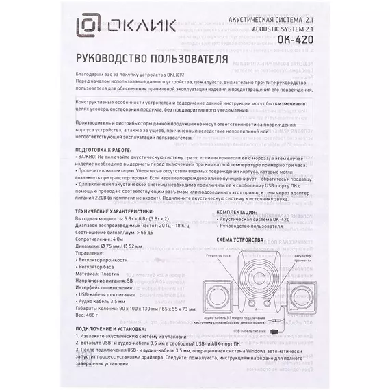 Колонки Oklick OK-420 черный 11Вт [440405]