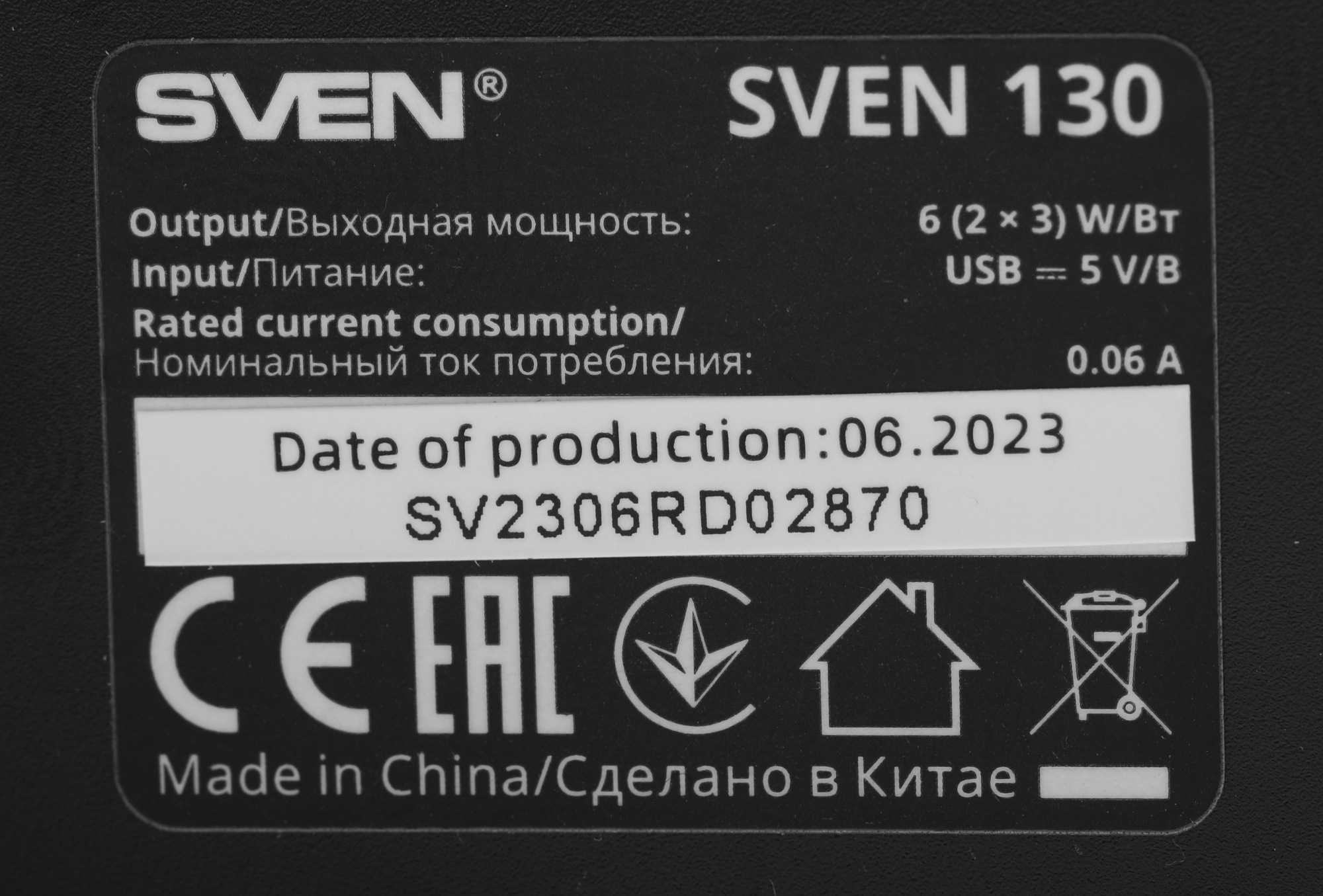 Колонки SVEN 130 2.0 черный 6Вт портативные [SV-020224]