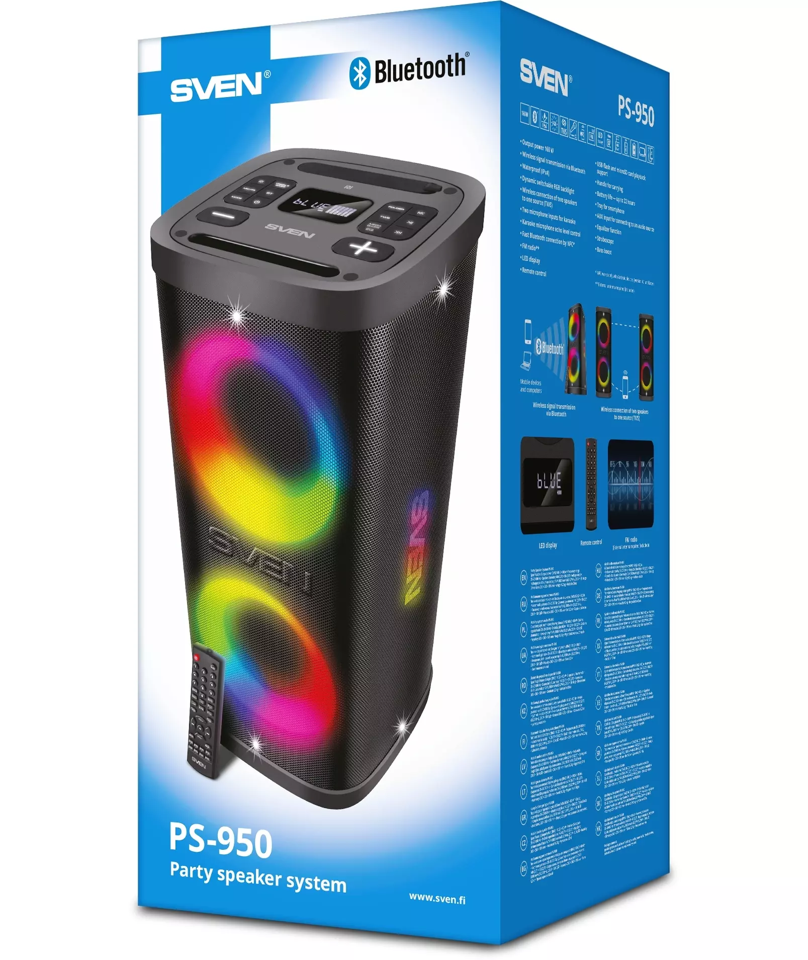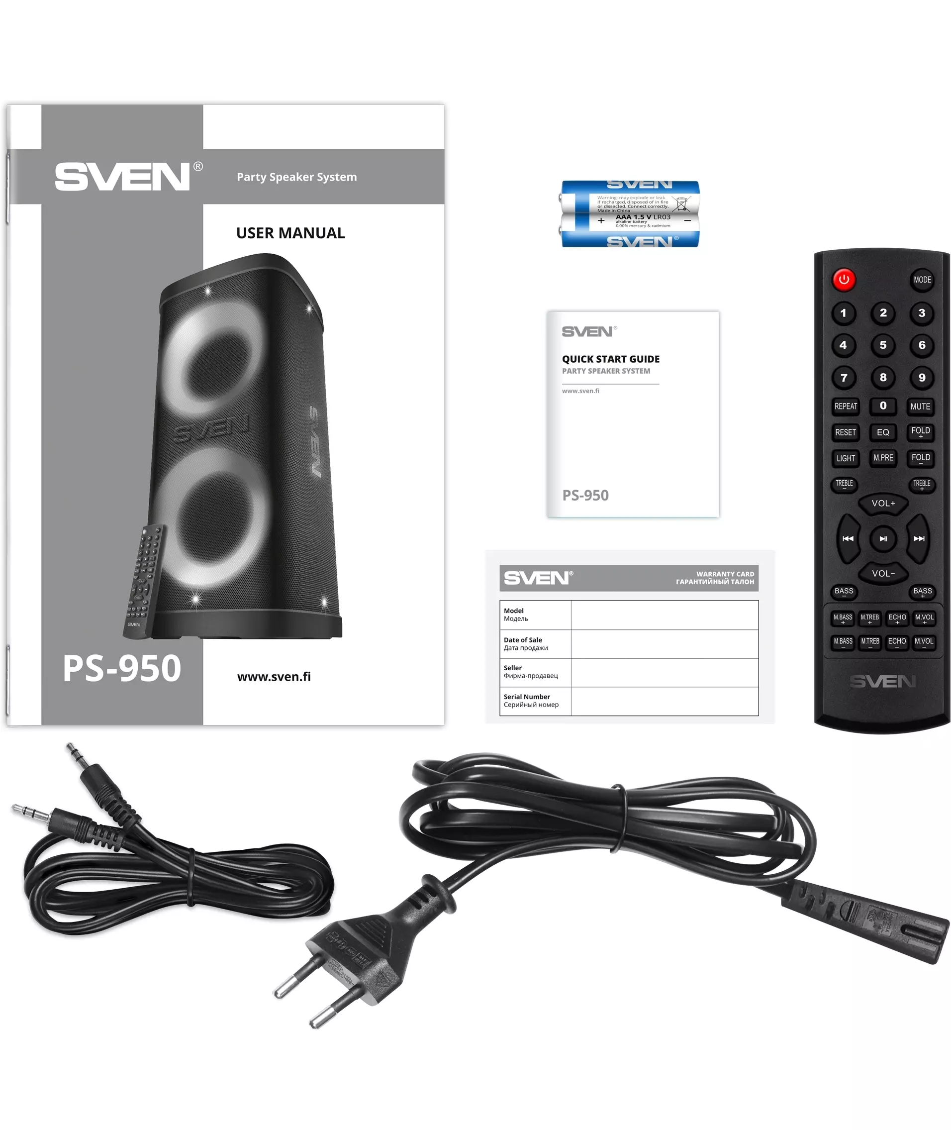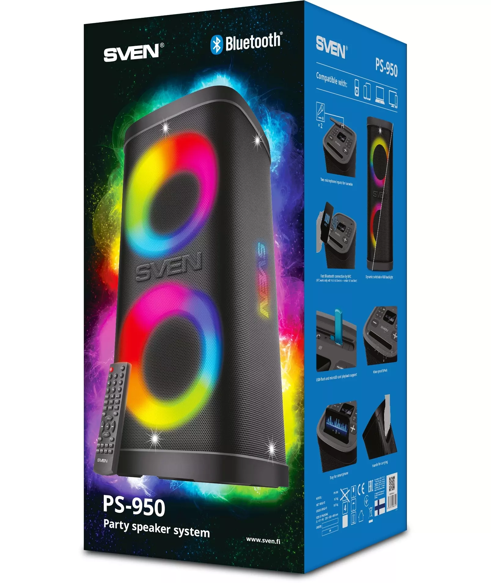 Колонка порт. SVEN АС PS-950 черный 160W Mono BT/3.5Jack 8800mAh [SV-022396]