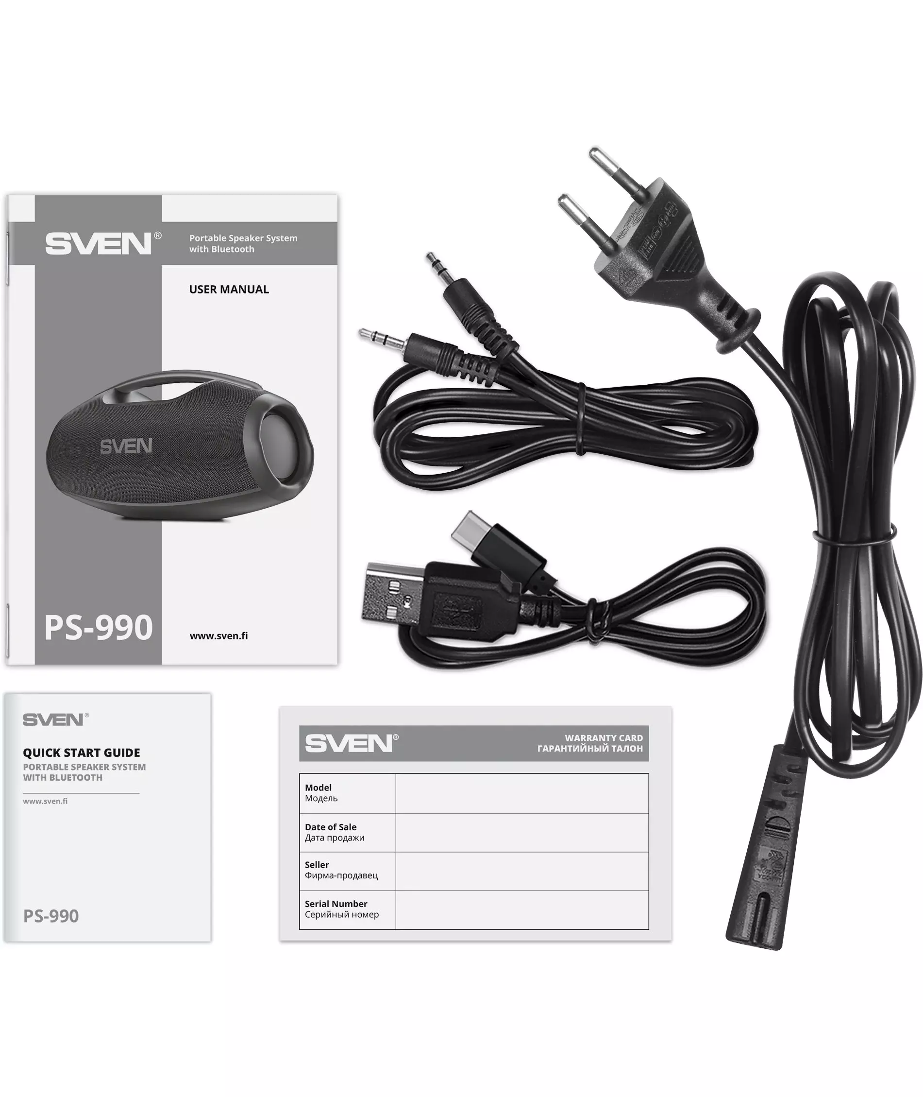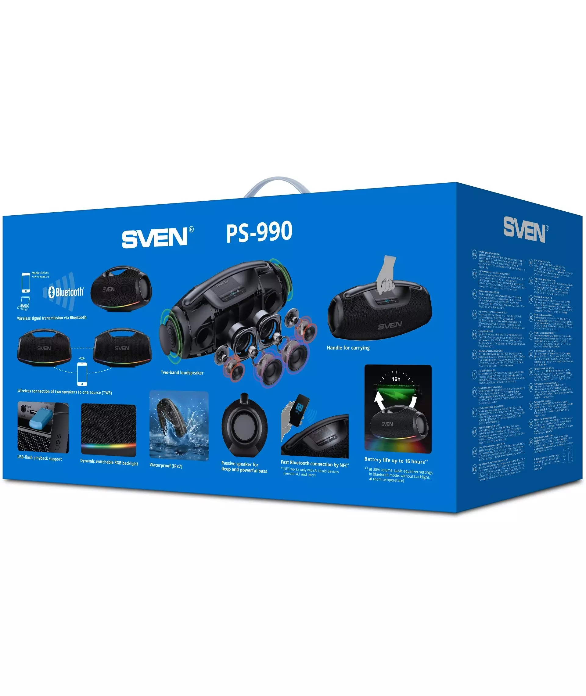 Колонка портативная SVEN АС PS-990 черный 180W 2.0 BT/3.5Jack 5200mAh (без.бат) [SV-022891]