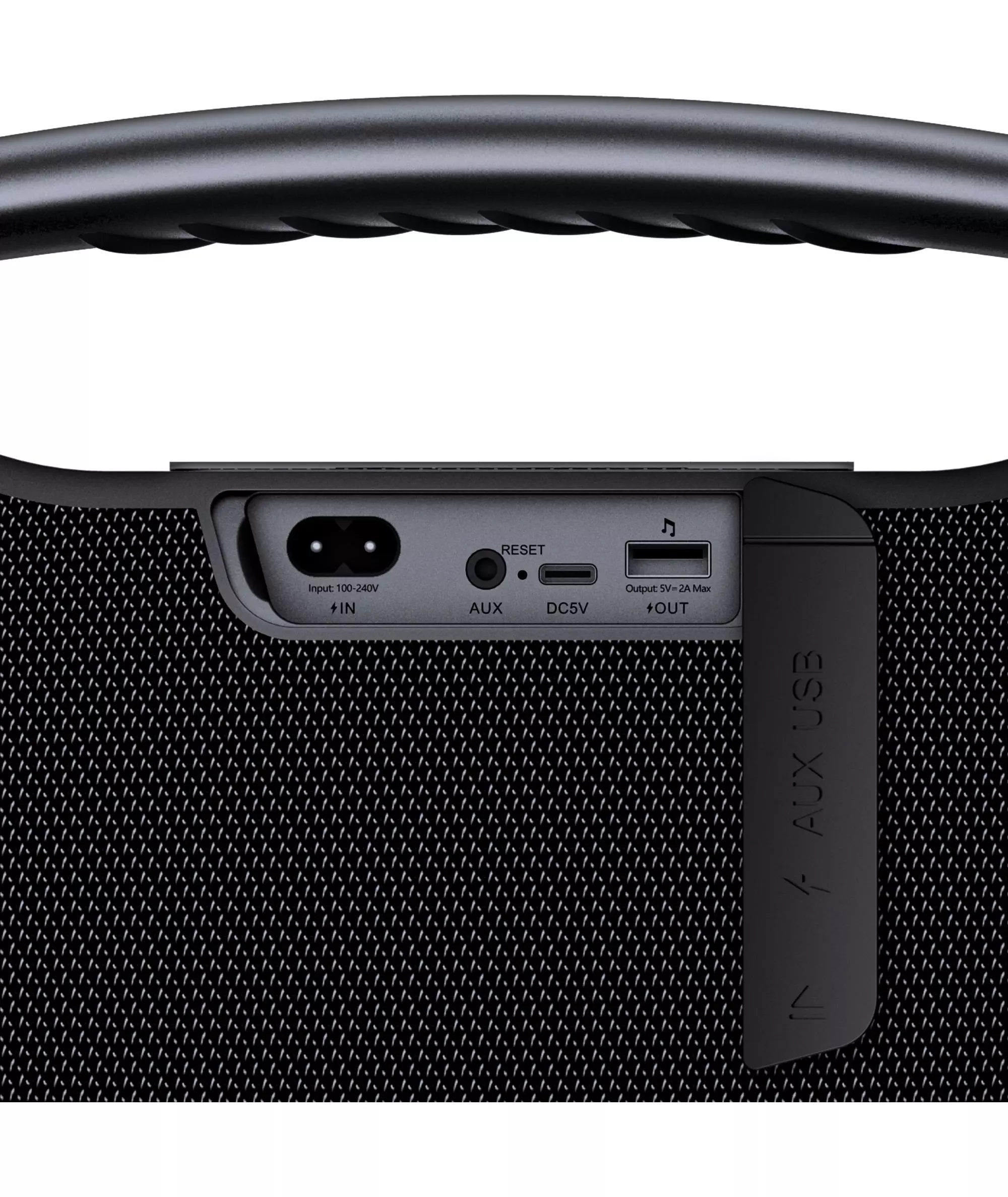 | Особенности | Два способа зарядки: от розетки ~230В или USB type-C (QC/PD). Встроенный в колонку аккумулятор обеспечивает до 16 часов* непрерывной работы в режиме воспроизведения.* при 30% громкости, базовые настройки эквалайзера, в режиме Bluetooth, без подсветки, при комнатной температуре |