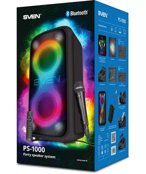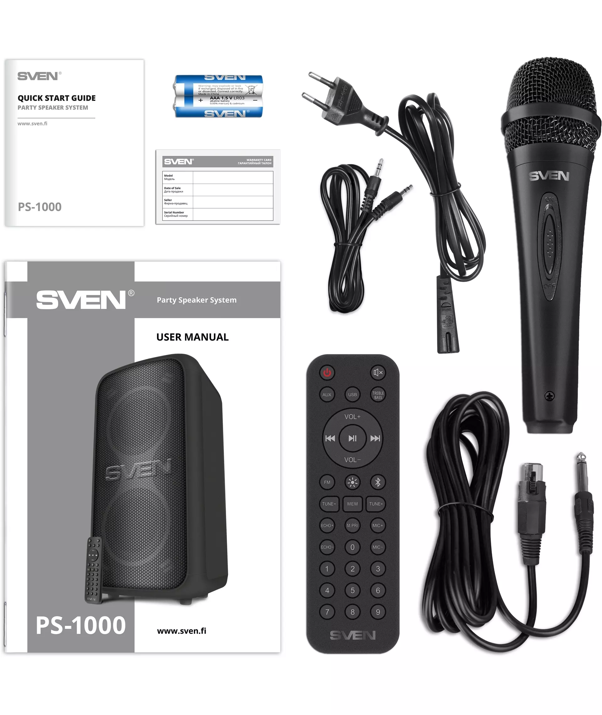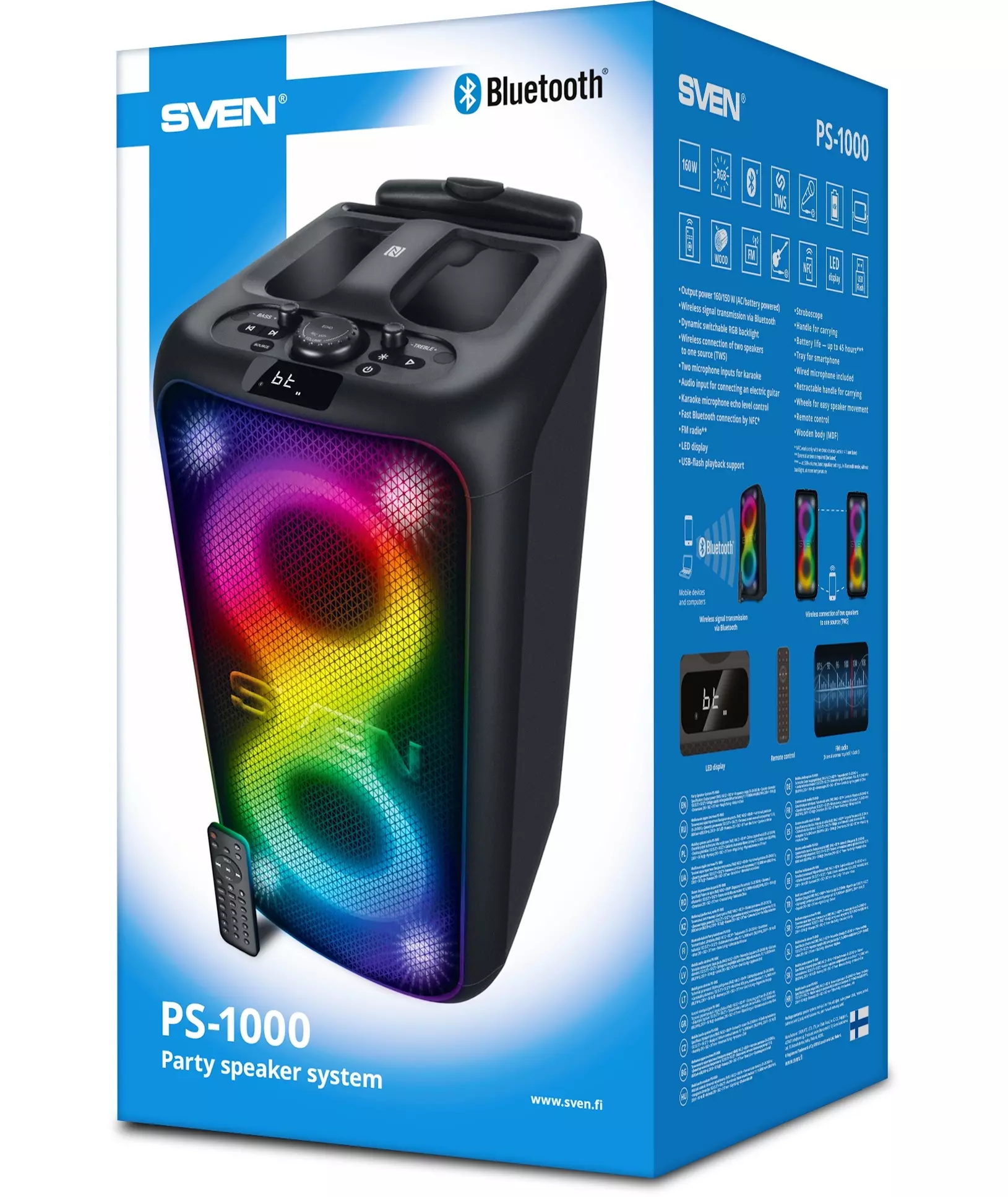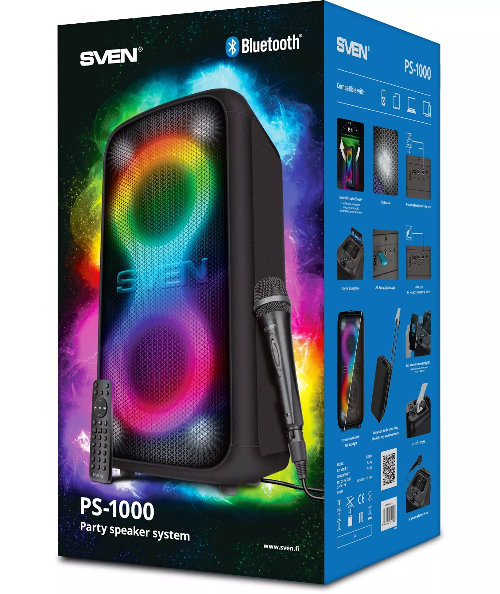 Колонка порт. SVEN PS-1000 черный 160W 1.0 BT/3.5Jack 10м 8000mAh [SV-022686]