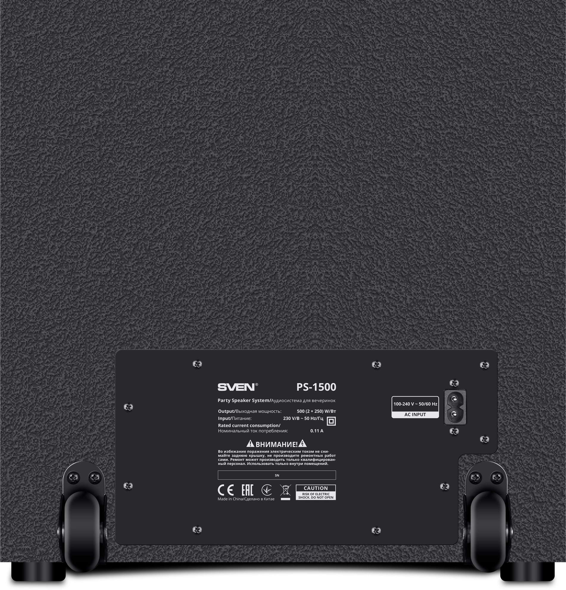 Колонка портативная SVEN PS-1500 500W 1.0 BT/3.5Jack 10м черный
