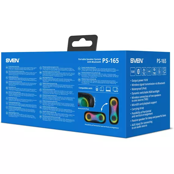 Колонка порт. SVEN PS-165 черный 16W 2.0 BT/3.5Jack 3000mAh [SV-022372]
