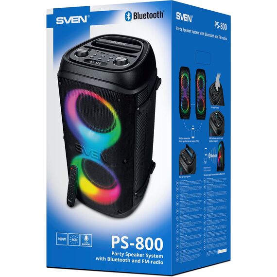 Колонка портативная SVEN PS-800 черный 100W 2.0 BT 10м 4400mAh [SV-021511]