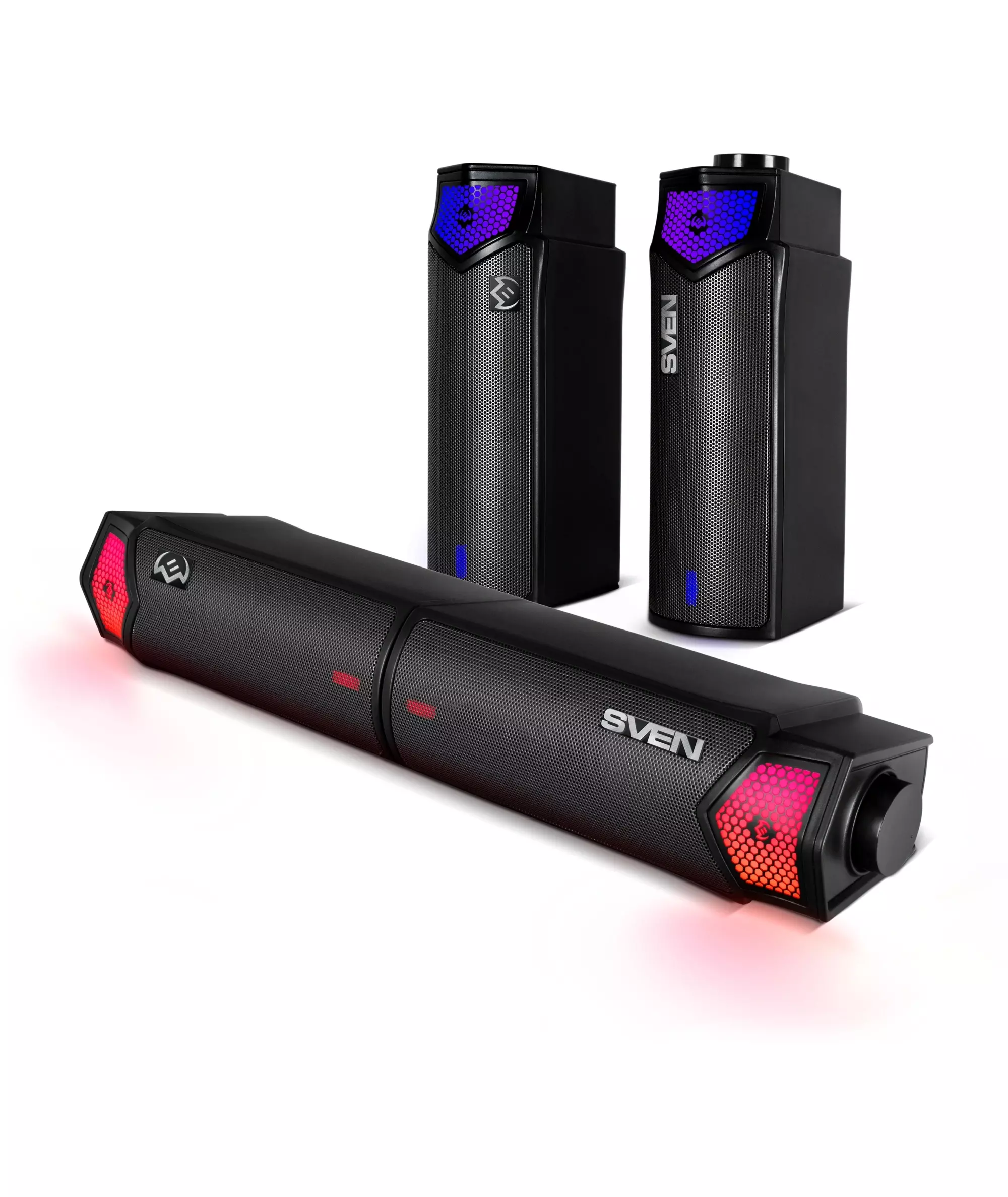 | Особенности | Корпус саундбара можно разъединить на две отдельностоящие колонки. Вы можете разместить их по краям монитора или установить под ним как компактный мини-саундбар. |