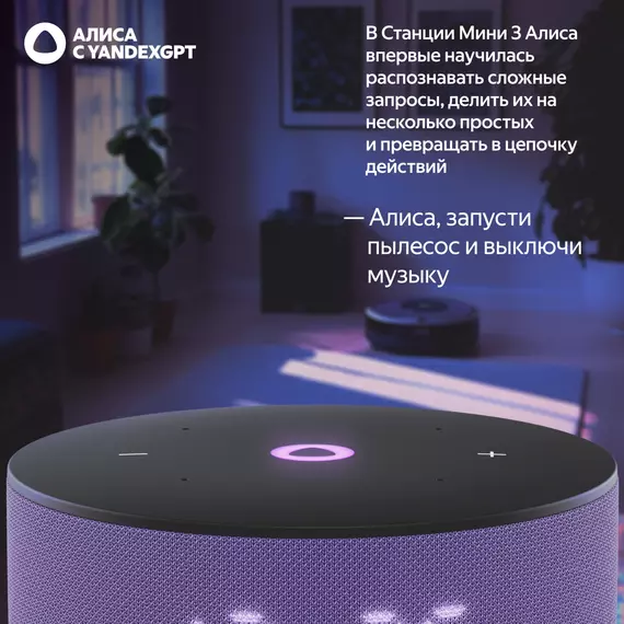 Описание Яндекс Умная колонка Yandex Станция Мини 3 Алиса лиловый 12W 1.0 BT/Wi-Fi [YNDX-00027LIL]