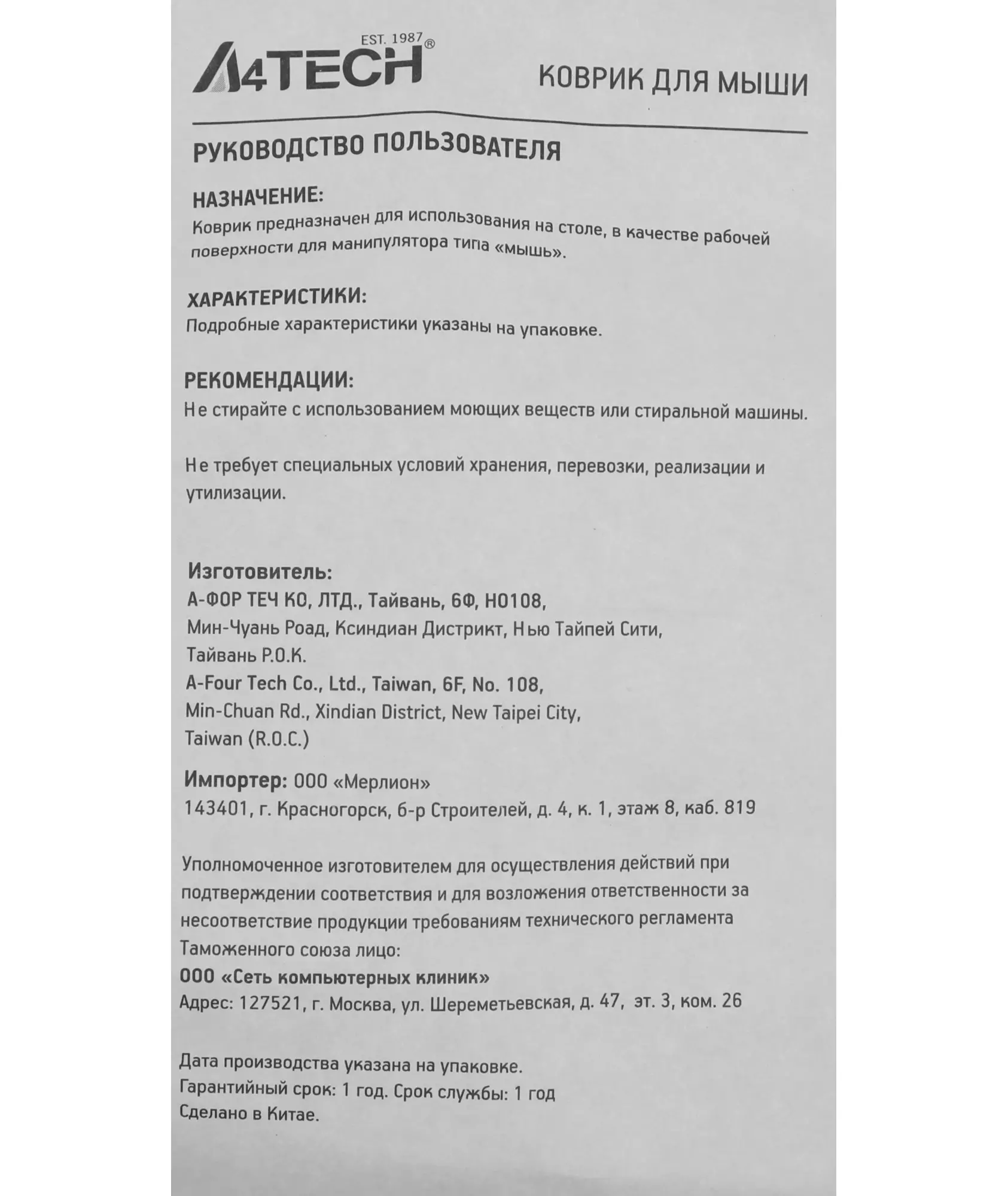 Коврик для мыши A4-Tech Bloody B-035S Средний черный 350x280x2мм