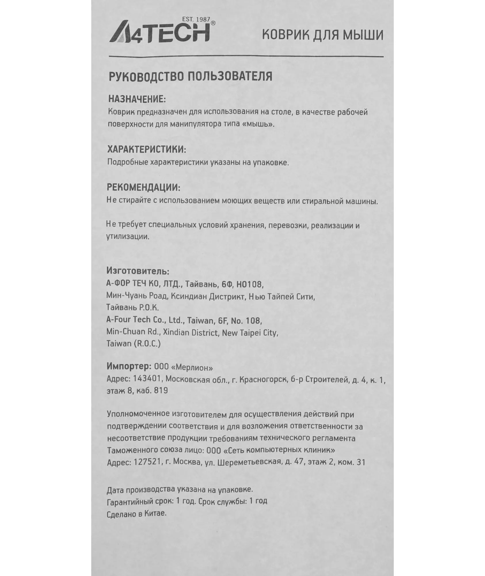 Коврик для мыши A4-Tech BP-50L Большой черный/рисунок 750x300x3мм