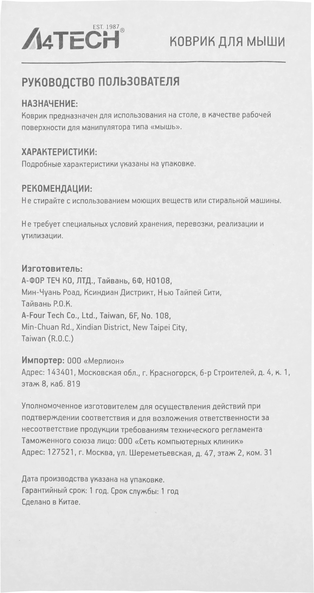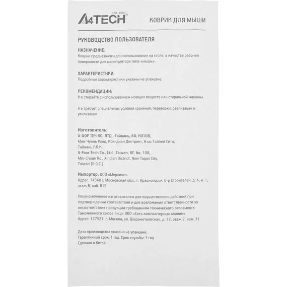 | Срок гарантии | 12 мес. |