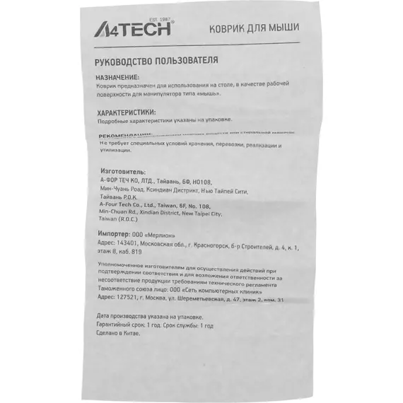 | Срок гарантии | 12 мес. |