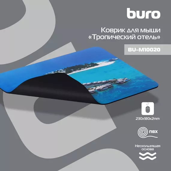 Коврик для мыши BURO BU-M10020 Мини рисунок/тропический отель 230x180x2мм